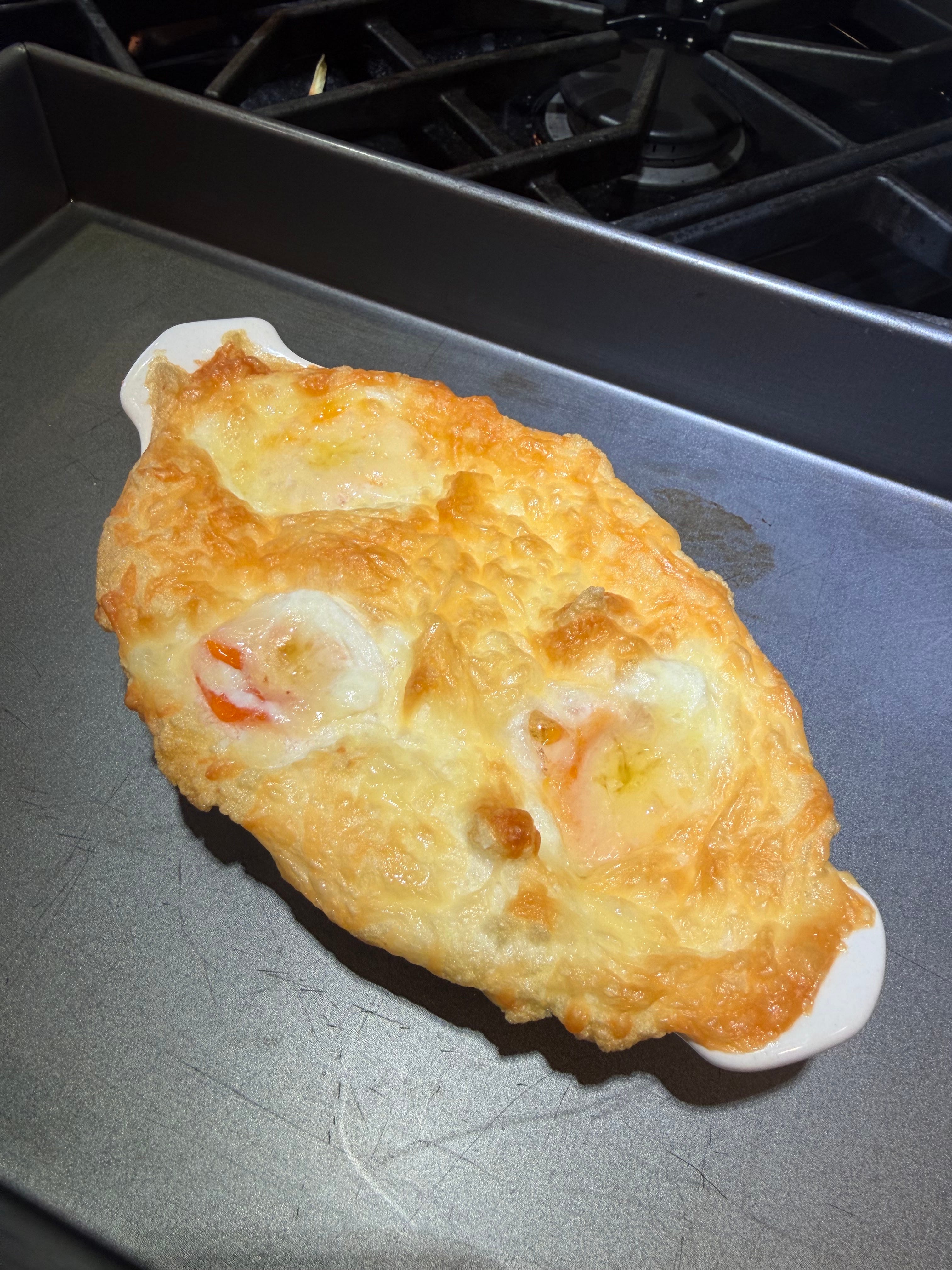 This is a really fun dish and I love a new way to eat eggs. They are savory and the runny yolks steal the show. It’s perfect for a lazy Saturday morning when you want something a little more special than your regular scrambled or sunny side up eggs.
